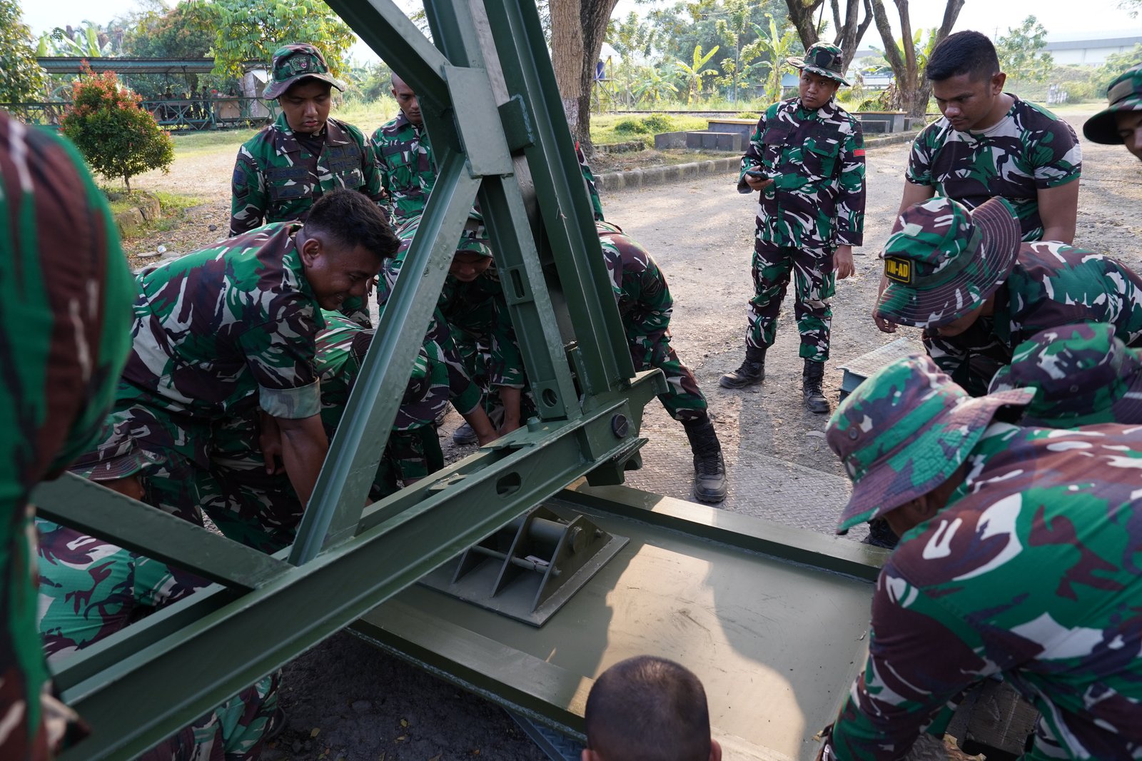 Setibanya di dermaga, kegiatan bongkar muat material jembatan modular dilaksanakan dari kapal untuk selanjutnya dimuat ke kendaraan truk trailer. Seluruh material kemudian digeser menuju Kompi Bantuan Yon Zipur I/DD yang berlokasi di Jalan Pulau Brayan, Medan, guna mendukung proses perakitan dan uji fungsi alat.