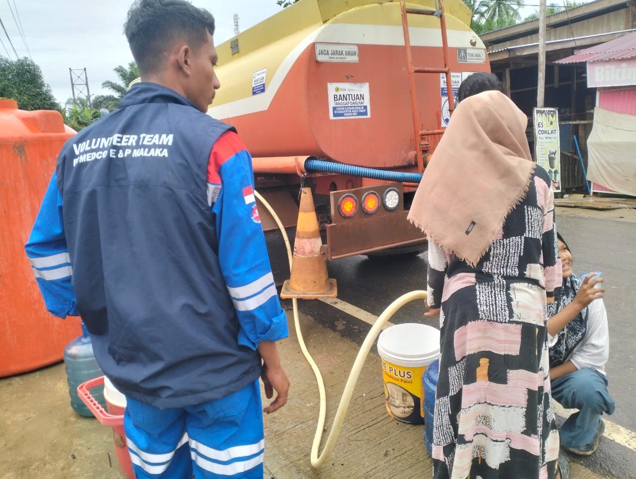Annanews.id || Aceh Timur, 4 Februari 2026 — PT Medco E & P Malaka (Medco E&P) bersama Badan Pengelola Migas Aceh (BPMA) terus berperan aktif dalam upaya pemulihan dampak bencana hidrometeorologi yang melanda Kabupaten Aceh Timur. Air bersih hingga saat ini menjadi salah satu kebutuhan korban bencana tersebut, karena itu salah satu bentuk dukungan tersebut melalui pendistribusian sebanyak 1,13 juta liter air bersih bagi masyarakat di 56 desa terdampak yang tersebar di lima kecamatan.