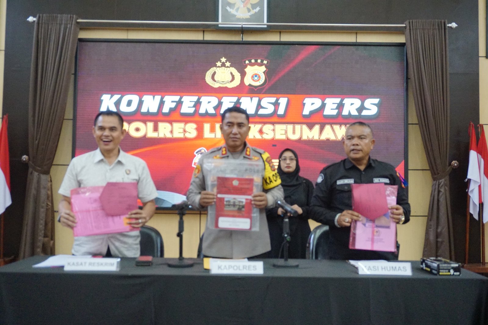 Keterangan tersebut disampaikan langsung oleh Kapolres Lhokseumawe AKBP Dr. Ahzan., S.H., S.I.K., M.S.M., M.H saat konferensi pers yang digelar di Gedung Serbaguna Polres Lhokseumawe, Kamis siang (5/2/2026), didampingi Kasat Reskrim Dr. Bustani., S.H., M.H., M.S.M dan Kasi Humas Polres Lhokseumawe Salman Alfarasi., S.H., M.M.