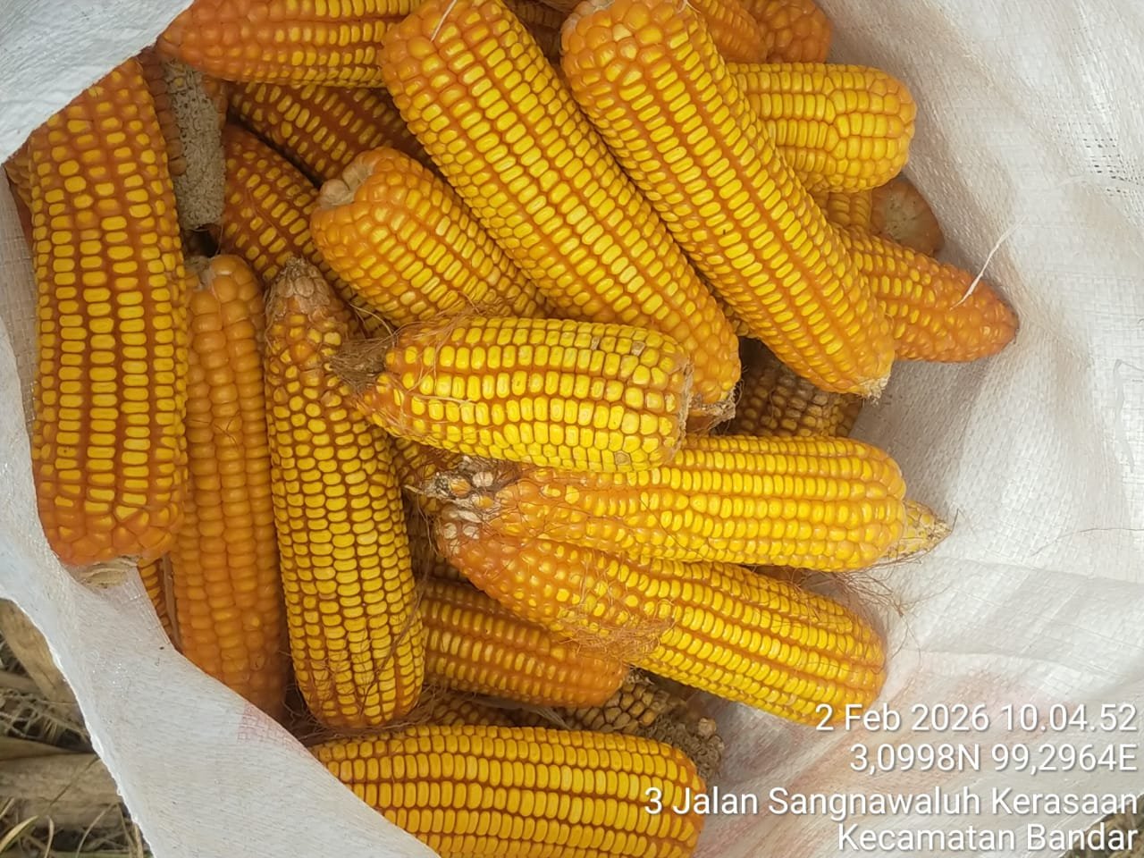 Suandi Pandiangan, petani pemilik lahan sekaligus Ketua BUMNAG Abadi Jaya Nagori Pematang Kerasaan, menceritakan perjalanan penanaman hingga panen. “Kami tanam jagung hibrida jenis BISI 18 pada tanggal 11 Oktober 2025. Jadi waktu tanam sampai panen sekitar 2,5 bulan. Luas lahan yang kami garap 30 rante atau sekitar 4,8 hektar,” ungkap Suandi menjelaskan detail teknis.