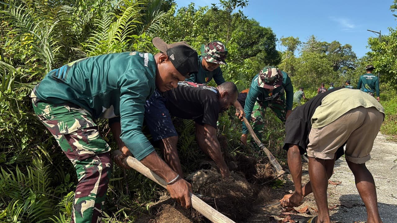Kegiatan ini dilakukan sebagai wujud kebersamaan Prajurit Pos Kokoda dengan Masyarakat dalam memelihara fasilitas umum guna memperlancar mobilitas warga dalam beraktivitas sehari-hari. Akses jalan yang sebelumnya tertutup semak dan material alami dibersihkan secara gotong royong.