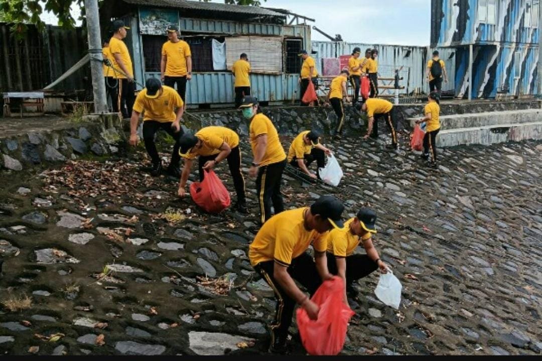 Sebanyak lebih dari 1.000 personel kepolisian dikerahkan untuk menyisir sampah di sepanjang Jalan Boulevard 1 hingga kawasan Megamas Manado.